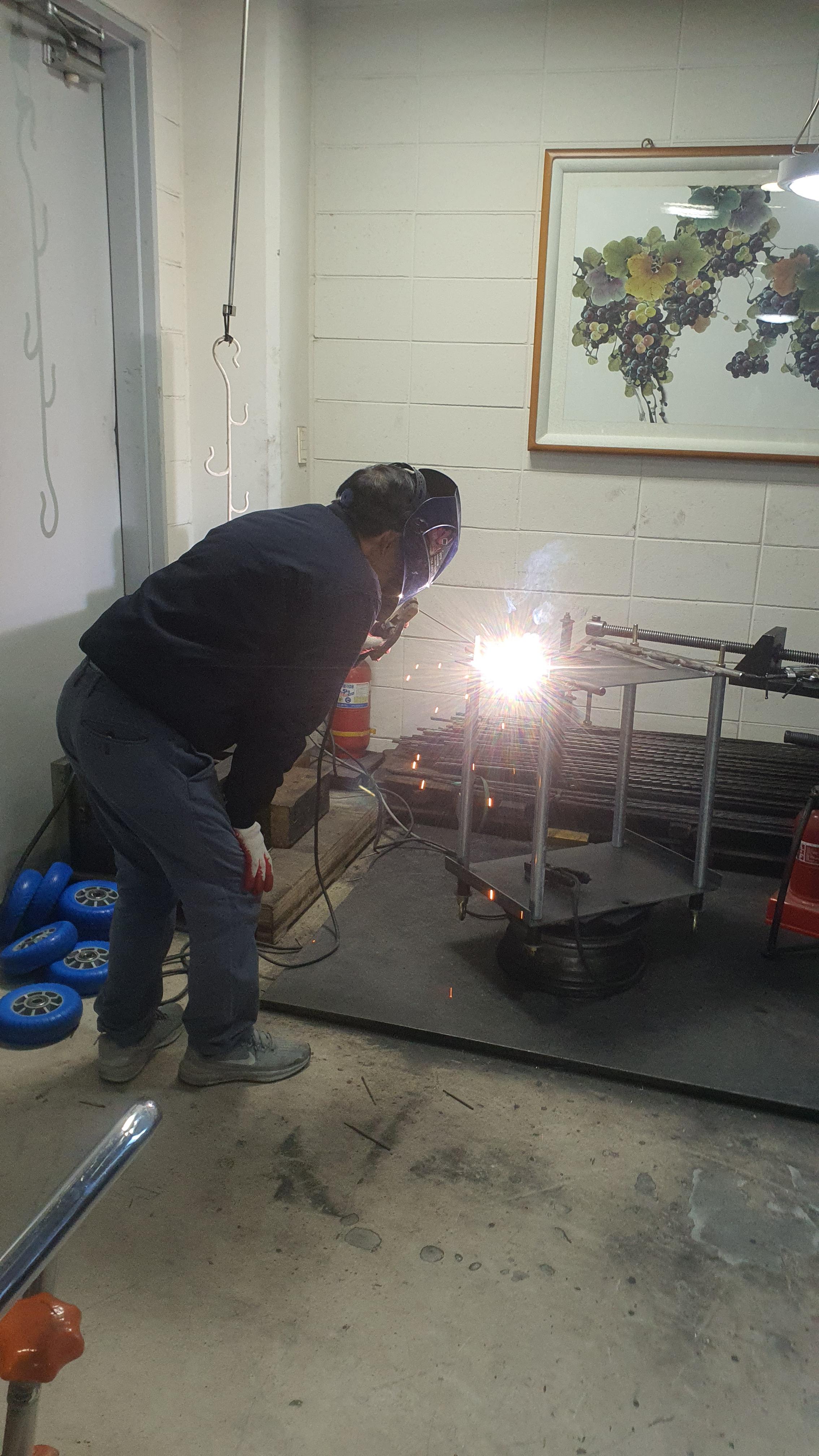 공장에서 인장기를 생산하는중입니다.